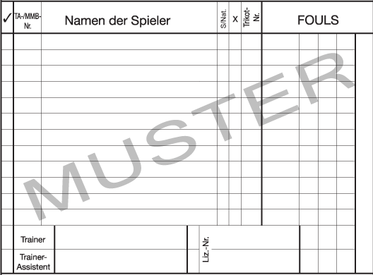Die Lektion 3 ist sehr umfangreich. Bevor wir uns mit der Eintragung der Fouls beschäftigen, geht es erst einmal um die Eintragung der Spielerinnen und Spieler. Diese Eintragung wird von den jeweiligen Trainern durchgeführt. Bei Vorlage einer Mannschaftsliste ist der Anschreiber allerdings in der Pflicht die Eintragungen zu übernehmen. Die Eintragung der Spielernamen sollte 20 Minuten vor Spielbeginn durchgeführt werden.