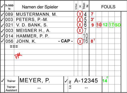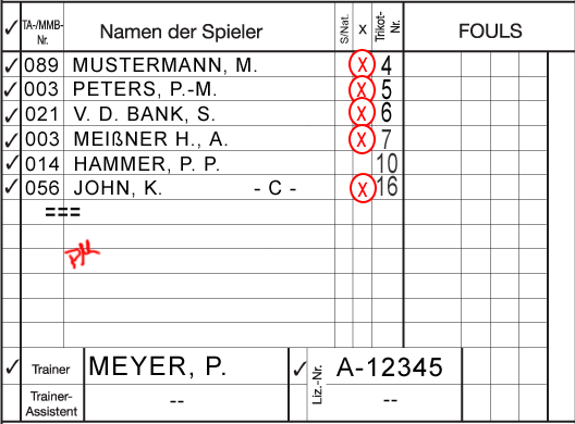 Hier nun eine ausgefüllte Mannschaftsliste: