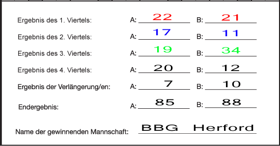 Hier nun ein gänzlich ausgefüllter Spielberichtsbogen